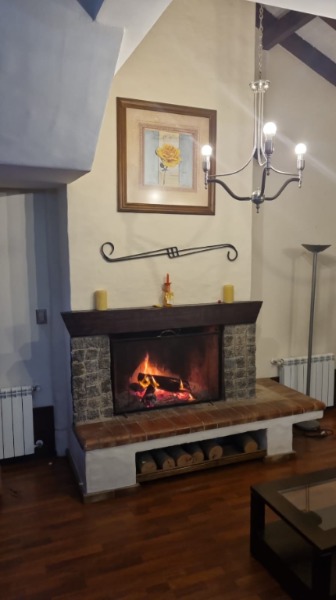 - Gran living en desnivel con un confortable hogar a leña con detalles de ladrillo a la vista.
